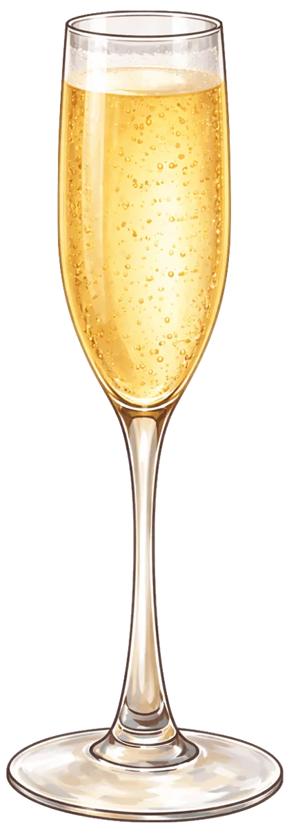Where a traditional French 75 uses gin, this swaps in Buffalo Trace bourbon and leans on cane sugar syrup instead of simple, giving the drink a rounder, warmer base that plays off the champagne's dryness rather than sharpening it.