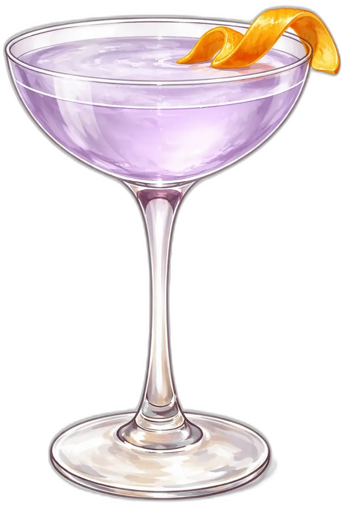 Add 0.75 oz Gin, 0.75 oz Triple Sec, 0.75 oz Crème de Violette, and 0.75 oz Lemon Juice to a shaker with ice.